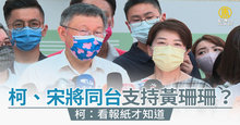 柯、宋將同台支持黃珊珊?柯:看報紙才知道