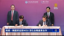2023-05-23 19:16:54台灣與韓國加深經貿來往,韓國貿易協會分別在昨天(22日)與今天,和中華民國全國工業總會以及商業總會簽署MOU。同時還率領35家韓國業者來台,與台灣廠商舉行商業媒合會。