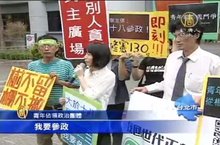 2014-09-01 21:49:39九合一選舉今天開始,一直到5日受理登記。青年佔領政治團體的一名19歲青年高毅心也想登記選議員,不過,選罷法規定要滿23歲才能成為被選舉人,因此只能在選委會表達抗議。