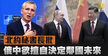 北約秘書長批俄中欲擅自決定鄰國未來