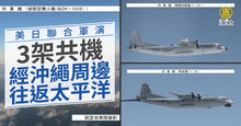 美日聯合軍演 3架共機經沖繩周邊往返太平洋