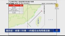 國防部:偵獲17共機、4共艦在台海周邊活動