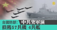 中共突軍演 台國防部:偵獲57共機.4共艦
