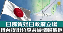 日媒質疑日政府立場 指台提出分享共機情報被拒