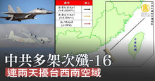 中共多架次殲-16 連兩天擾台西南空域
