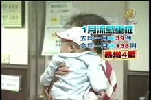 2014-01-19 21:04:06就是因為天氣冷颼颼,1月份才過了一半,全台流感的病例,就突破10萬人次,其中併發重症的病例,更是累積到了138例,是去年的四倍這麼多,疾管署因此宣布了,將流感特別門診,從2月提早到1月18日開設,來因應頻頻拉警報的流感疫情。