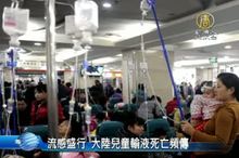 2014-12-28 21:19:20接著關心中國消息,大陸各地經常出現流感盛行時期,醫院人滿為患的情況,醫院樓梯裡、大廳、候診椅上,甚至有的診所街道邊也出現了拎著吊瓶打點滴的人群,其中以兒童居多,被外界喻為「吊瓶森林」。「輸液成癮」成為大陸醫院的一種怪相,而因為打點滴造成的醫療糾紛、死亡事件也頻頻發生。