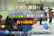 2016-02-18 21:25:45才剛過完年,不少醫生發現,門診的流感病人倍增,醫生表示,由於過年南來北往,造成疫情擴散,目前還在高峰期,加上A型流感病毒突變,不少打過疫苗的人也都中鏢,過年期間就造成9人死亡。