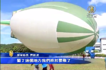 2014-07-19 21:53:36台東鹿野除了熱氣球,今天還多了一個巨無霸亮相,是一艘來自德國,長40公尺重900公斤的飛行船,具有動力引擎的飛行船,除了垂直起降外,還能輕巧的在空中做出轉彎,時速40公里,雖然遊客不能搭乘,但飛行船一亮相,遊客們快門猛拍,成為活動亮點。