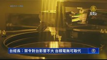 2022-10-18 20:07:44市場高度關注美國對中晶片的禁令,帶您看到,結束華府訪問行程的經濟部長王美花今天(18日)在立法院受訪,對於美國商務部上星期針對中國,祭出一系列晶片出口管制措施,她表示,對台灣影響不大,並強調,台積電技術地位,無可取代。