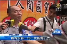 2011-11-09 20:02:18行政院文建會,在於98年首度辦理傳統藝術保存者,共計七項八位,其中傳統工藝類,來自於彰化鹿港鎮,陳萬能(錫工藝),施至輝(粧佛),還有施振洋(木雕)三位藝師,都獲得人間國寶的殊榮。