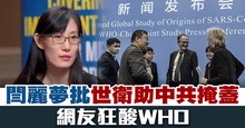 閆麗夢批世衛助中共掩蓋 網友狂酸WHO