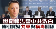 2021-03-31 20:14:52世衛發布病毒溯源報告,《華爾街日報》分析,內容根本可視為中國共產黨,和利益相關的西方人嚴重干預下的「洗白」文件。前美國國務卿蓬佩奧批評世衛,在關鍵時刻協助中共隱匿人傳人的消息,他批評世衛報告是一場騙局,並說,武漢病毒實驗室,是最可能的病毒來源。前副國安顧問博明,提出有力的間接證據,質疑共軍跟病毒的關係。