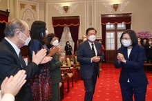 2022-10-28 14:29:06總統蔡英文今天接見優良商人、台灣餅等得獎人表示,國門已經正式開放,各種國際交流會陸續恢復,更加活絡。希望各個產業領域的先進,在疫情過後的新階段,打開更多新的商機。一起努力讓台灣繼續在全球供應鏈當中,占有關鍵的一席之地。