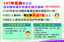 2019-05-13 19:38:16彰化縣出現今年首例新生兒腸病毒重症個案,一名男嬰出生後5天出現發燒症狀,經檢驗為腸病毒克沙奇B5型感染併發重症,目前小男嬰經治療後,已出院返家。醫師提醒,新生兒腸病毒是新興傳染病現象,致死率高達七成,護理人員和家長要更加提高警覺。