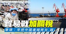 2019-05-11 16:39:25貿易戰再度升溫,本周美方表示中共在協議上反悔承諾,週五起2000億美元商品關稅,拉高到25%,產業供應鏈陸續撤出中國,國內品牌大廠華碩,去年也將生產線,轉到台灣、越南,提早進行因應。