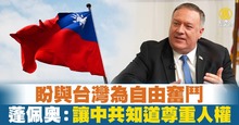 盼與台灣為自由奮鬥 蓬佩奧:讓中共知道尊重人權