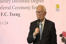 2018-01-24 20:43:48台積電副董事長曾繁城今天(24日)獲頒清華大學名譽博士學位,台積電董事長張忠謀及兩位總經理暨共同執行長劉德音、魏哲家都親臨致賀。張忠謀致詞表示,曾繁城是他在台積電三十年最好的戰友。