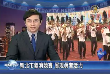 2014-06-22 21:11:56今天在板橋有一場專屬義消的運動園遊會,動員了一千多人,現場氣氛相當熱鬧。日前,為了訓練競技大賽基本繩結,不幸造成心肌梗塞送醫的義消辛鐘霖,在急救後復原後,今天特別趕到現場聲援,感謝弟兄們的付出。