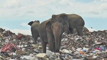 斯里蘭卡象群在垃圾場覓食 塑料全吃下肚