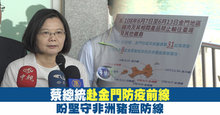 蔡總統赴金門防疫前線 盼堅守非洲豬瘟防線