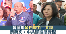韓國瑜金門喊九二共識 蔡英文:中共滲透感受深