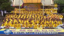 2019-05-06 21:23:47梅雨鋒面報到,週日(5日)午後高雄橋頭糖廠晴時多雲偶陣雨,不過,阻擋不了數百位法輪功學員聚集,舉行一年一度的慶祝「世界法輪大法日」活動,現場許多市議員到場發表演說。