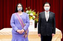 2022-06-14 18:24:23外交部長吳釗燮今天代表政府頒贈「大綬景星勳章」給即將離任的宏都拉斯駐台大使寶蒂絲妲(Eny Yamileth Bautista Guevara),表彰她駐台期間對深化台宏兩國邦誼的努力與卓越貢獻。