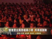2011-10-18 22:01:02歌手詹雅雯在臺南舉辦了一場慈善演唱會。 ,詹雅雯臺南熱唱兩小時 所得捐弱勢