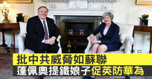 批中共威脅如蘇聯 蓬佩奧提鐵娘子促英防華為