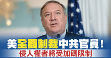 2020-12-22 12:53:48美國國務卿蓬佩奧今天(22日)宣布,為了展現美方對中共壓迫行徑究責的決心,將對所有涉及侵犯人權的中共官員實施簽證制裁。這些官員未來將無法入境美國,他們家人也可能面臨相同限制。對此,中華民國立委,也表示支持。