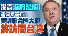 蓬佩奧譴責中共壓港 宣布美駐聯大使將訪台灣