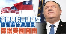 蓬佩奧批言論審查 強調美台進展是保護美國自由