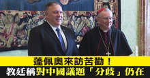 蓬佩奧來訪苦勸!教廷稱對中國議題「分歧」仍在