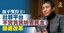 和平獎得主:社群平台不實資訊妨害民主 籲速改革