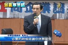 2011-11-02 21:05:50接下來看到的,就是越演越烈的科技業無薪假風暴。今天總統馬英九在新竹科學園區與企業界代表舉行座談會。馬總統說,雖然目前景氣低迷,相較於三年前金融風暴時,一開始就有416家廠商、十八萬人放無薪假,現在無薪假的情形,還不嚴重,不過馬總統還是希望各界能共體時艱。
