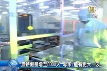 2015-11-17 20:12:31財經消息,台灣無薪假人數暴增3倍,其中面板業佔最大宗。專家分析,主要因為中國企業在政府力量扶植下,以削價戰威脅台灣產業,專家估計,無薪假人數可能在明年上半年,來到高峰。
