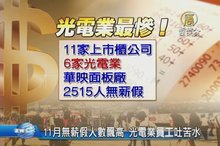 2015-11-19 20:11:18再來看到,景氣冷颼颼,11月實施無薪假的企業已經達到45家,尤其11家通報無薪假的上市櫃公司,光電業就佔了6家。