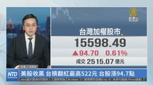 美股收黑 台積翻紅最高522元 台股漲94.7點