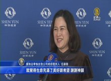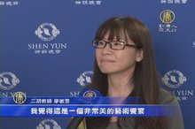 2013-03-11 21:22:32鏡頭回到台灣。在台灣保險業擔任襄理的張小姐,觀賞美國神韻巡迴藝術團3月9日在台中的第四場演出,她說大幕拉開便讓她感到震撼不已,神韻節目超乎想像,也讓她看見了生命的啟示。