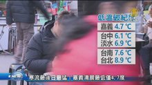 2018-01-10 20:06:13新聞一開始,馬上來看到,入冬首波寒流發威!包括太平山、玉山、合歡山都下雪,多個測站創了入冬最低溫紀錄,今天平地最低溫,落在淡水,只有8.1度,不過隨著冷空氣持續南下,提醒觀眾朋友,週四清晨才是這波寒流最冷的時候,低溫可能再下探。