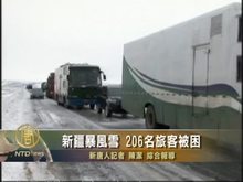 2011-11-23 21:24:14中國西北地方近幾天遭遇了嚴重惡劣天氣,新疆省道201線額敏縣瑪依塔斯路段,因暴風雪被封閉交通近24小時,路上排滿了車輛,一度有206名旅客被圍困。