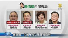 2017-09-07 20:07:25準行政院長賴清德明天上任,新內閣的財經兩大指標人事,分別為行政院副院長施俊吉,將處理一例一休修法,金管會主委顧立雄,則是要整頓金融監理。經濟部政次 跟 國發會副主委,分別由2位 青壯派 財經學者,原國發會副主委龔明鑫 及 台經院副院長邱俊榮接任。賴清德說,這次內閣布局以穩健為原則。