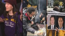 華為孟晚舟5/8再開庭 場外華人燒中共五星旗抗議