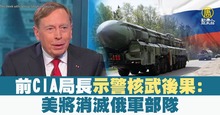 2022-10-03 12:41:05俄烏戰延燒七個多月,俄羅斯總統普丁上個月揚言動用核武。美國前中情局局長、已退役4星陸軍上將裴卓斯,2日接受美媒專訪時表示,如果普丁真的決定在對烏克蘭的戰爭中使用核武,美國將與北約盟友,一起消滅俄羅斯在烏克蘭的軍隊。