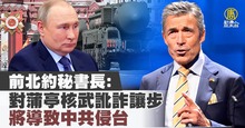 2022-10-06 08:52:05前北大西洋公約組織(NATO)秘書長拉斯穆森(Anders Fogh Rasmussen)受訪時指出,如果西方對俄羅斯總統蒲亭的核武訛詐讓步,將導致中國侵略台灣。