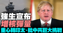 2021-03-17 12:53:42週二,英國政府公佈了30年來最大規模的外交和國防政策報告,調高核彈頭上限,並強調要擴展在印太地區的影響力。
