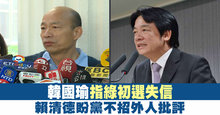 韓國瑜指綠初選失信 賴清德盼黨不招外人批評