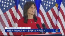 2024-03-07 12:50:09共和黨總統黨內初選「超級星期二」,川普從15州拿下14個州,前駐聯合國大使海利宣布退選,她警告,社會主義是毀滅之路,喊話美國不能因為分歧而分裂,強調要與台灣等盟友站在一起。