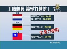 2017-01-04 20:14:55各界針對一例一休大作文章,不過我們也要帶您看到,有數據顯示,經濟越顯著發展的國家,勞工工時 反而越低,平均產出產值更高,顯示工時長 未必代表競爭力。有學者認為,台灣應該擺脫過往低薪、低成本思維,才能帶動整體競爭力,向上攀升。